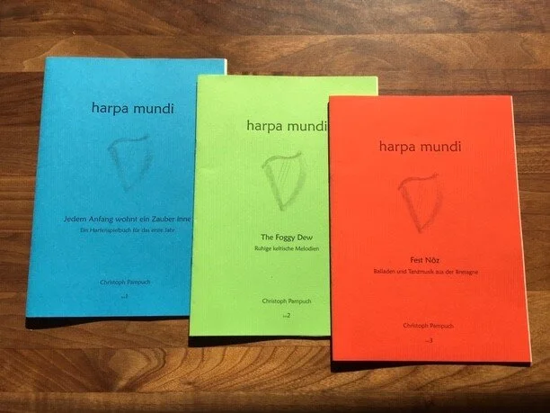 Für jeden, der auf der Suche nach Harfennoten ist, kann ich die Reihe harpa mundi unbedingt empfehlen. Es sind inzwischen über 20 Hefte erschienen. Für jedes spielerische Niveau und jeden Geschmack ist etwas dabei und häufig gibt es nützliche Hinweise zum Erlernen der Stücke.